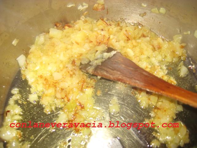 ajo y la cebolla. En una cazuela con el aceite bien caliente añádelo y deja que