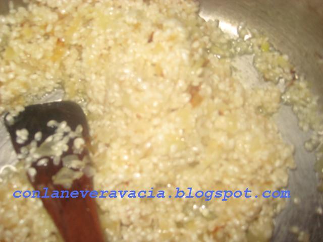 se vaya dorando. Cuando veas que ya está añade el arroz ( lávado y bien escurrido