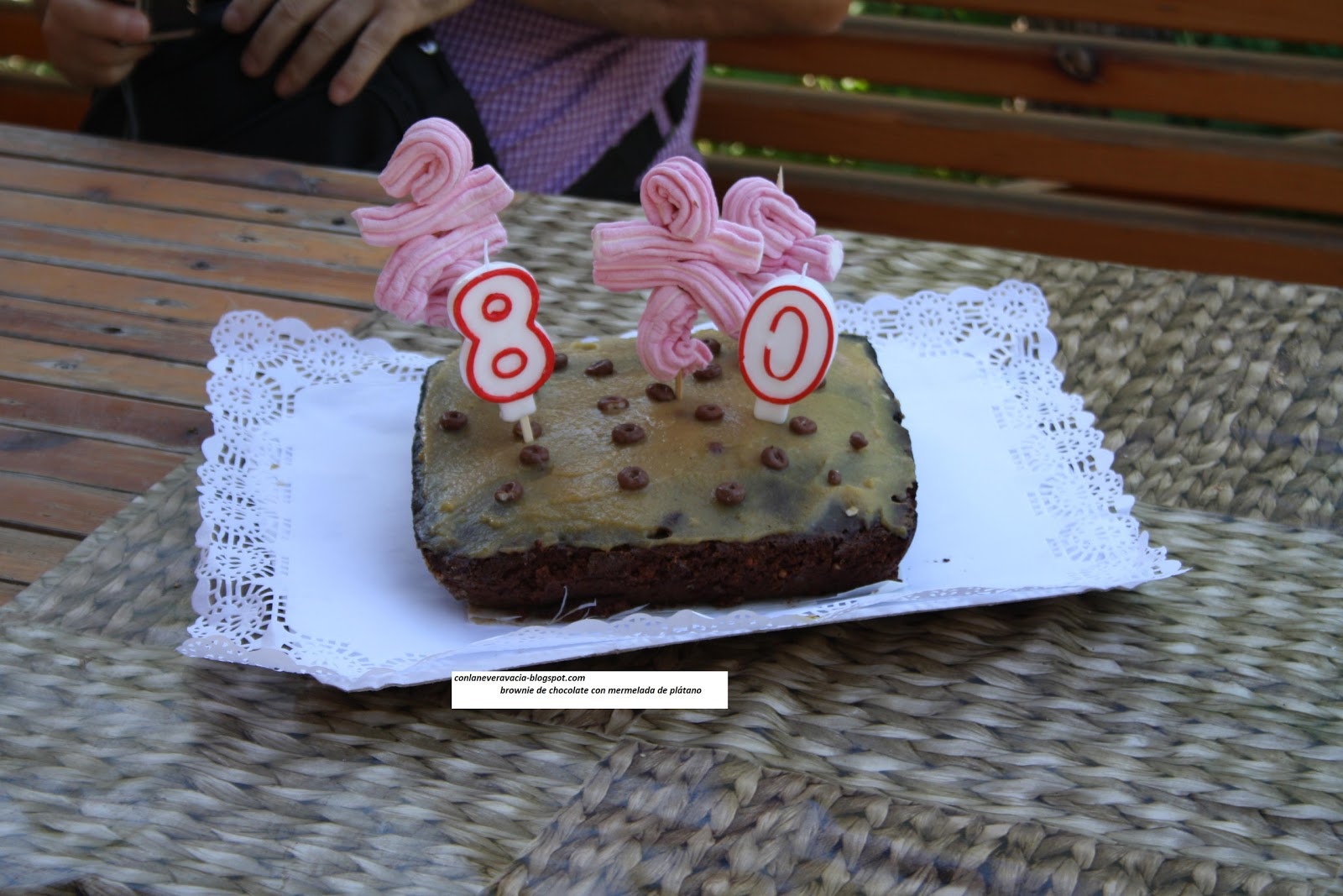 brownie cubierto de mermelada de plátano ( os aconsejo que la probéis, si os