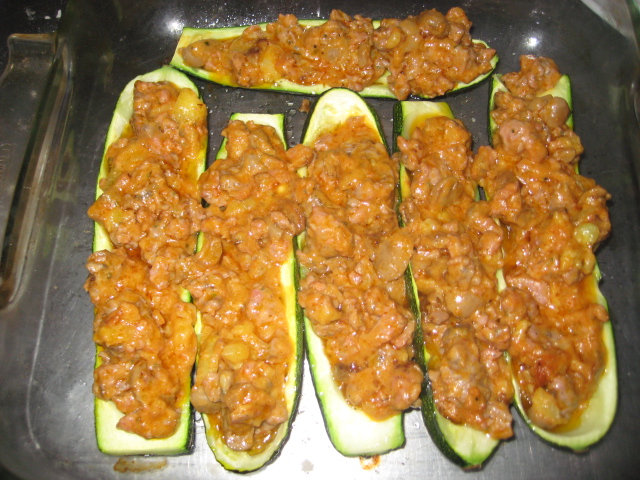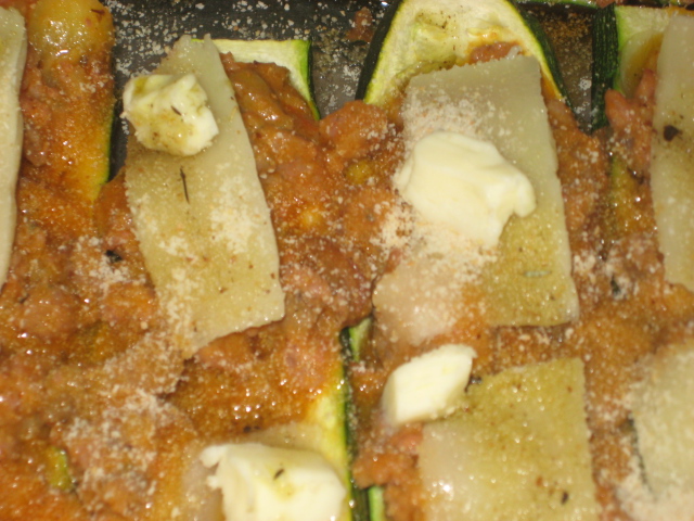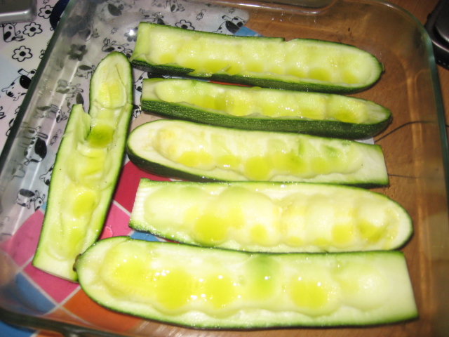 calabacines con la farsa, pon por encima trozos de queso ( he puesto queso semí