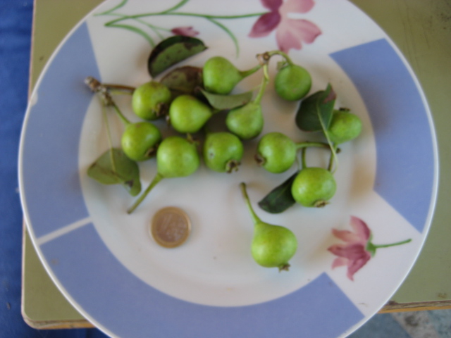 un montón de peras pequeñas a la vez, es un a fruta muy delicada, que se