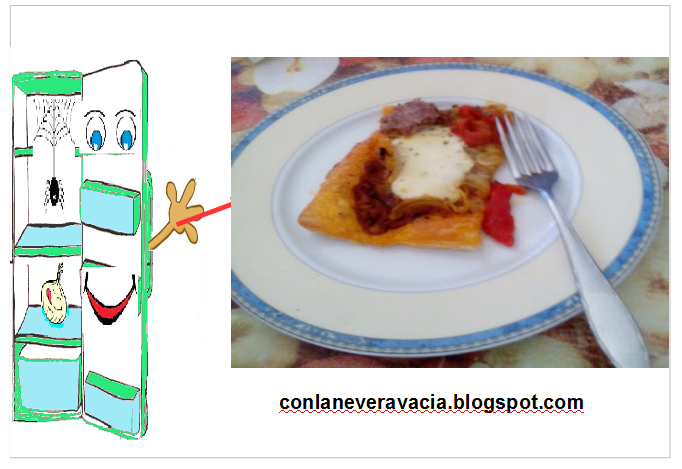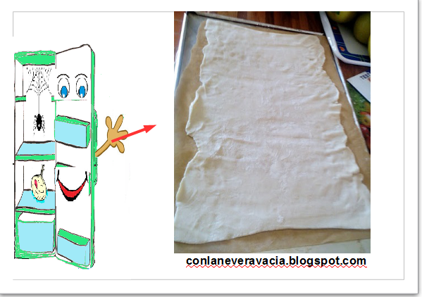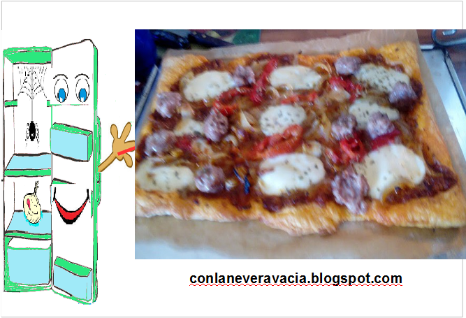 Al día siguiente para comer que era sábado aproveche a hacer una coca de hojaldre, al mirar que tenía por la cocina vi la salsa y decidí aprovechar.