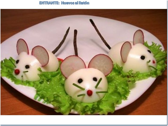 de rabanito a cada huevo para las orejas, los ojos los puedes hacer con unos