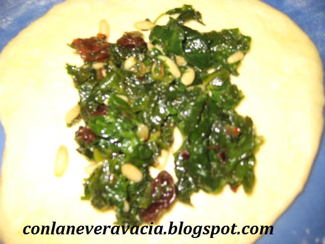 el más tradicional y popular es el relleno de espinacas, pasas y piñones. Hay